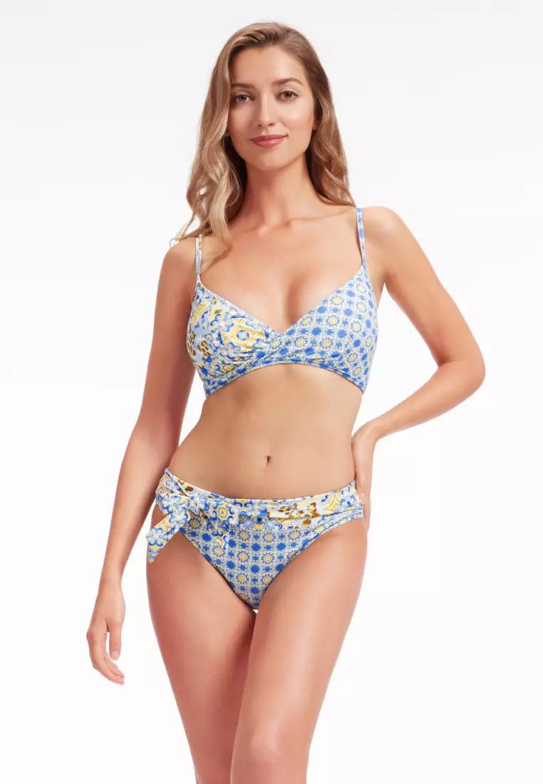 Hand wash separately in cold water. Then rinse and drip dry. Do not iron or tumble dry or dry clean. Rinse out suntan lotions. Chlorine will damage this garment. Bright colours may fade.