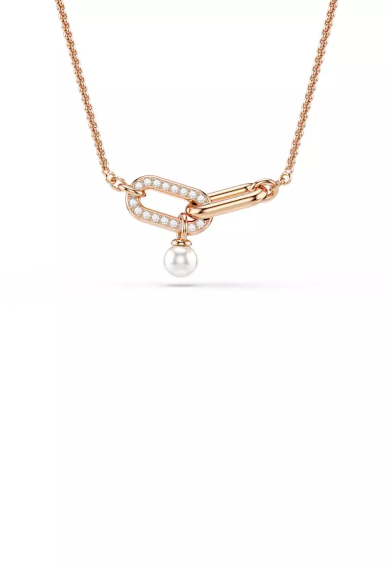 Constella Pendant, Crystal Pearl, Round Cut, White, Rose Gold-Tone Plated