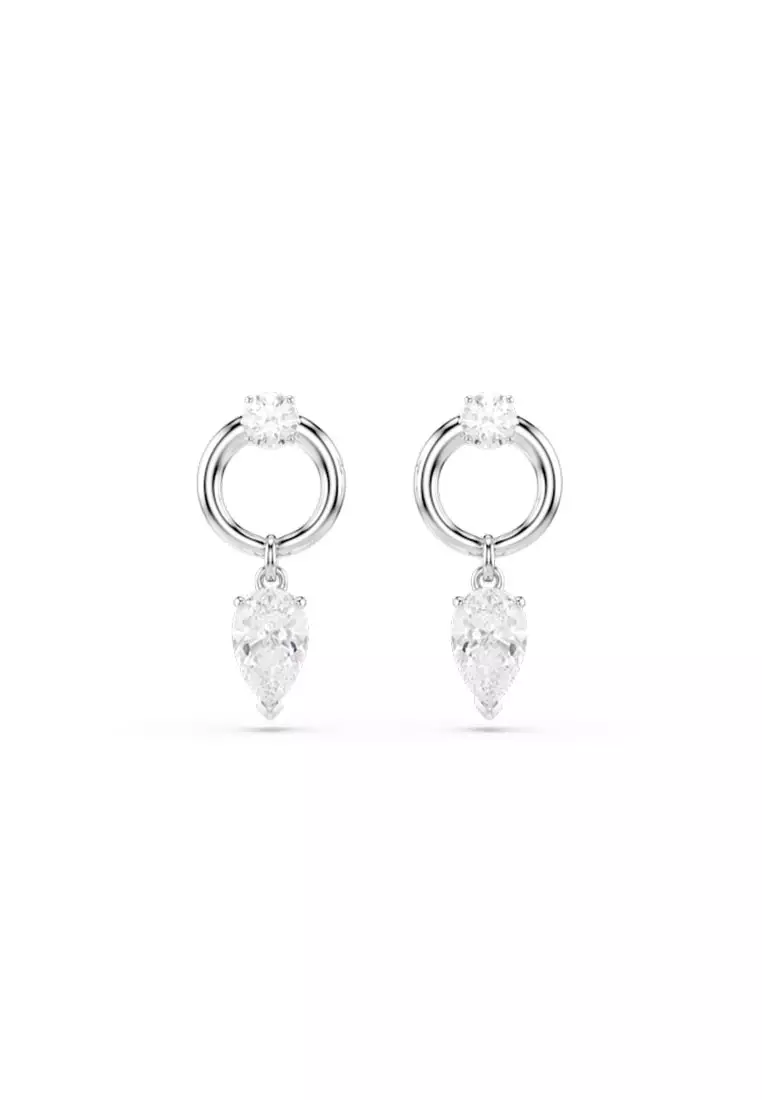 Mesmera Drop Earrings, Mixed Cuts, White, Rhodium Plated