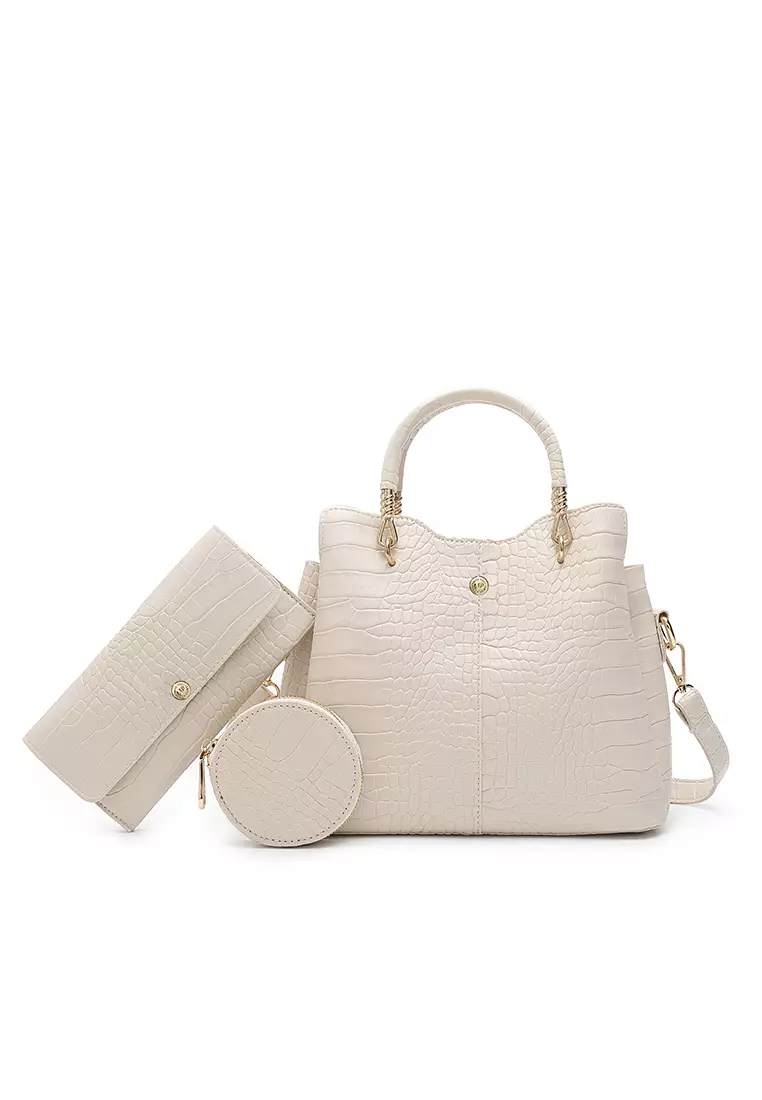 Women's 3-in-1 Handbag with Pouch & Purse - White