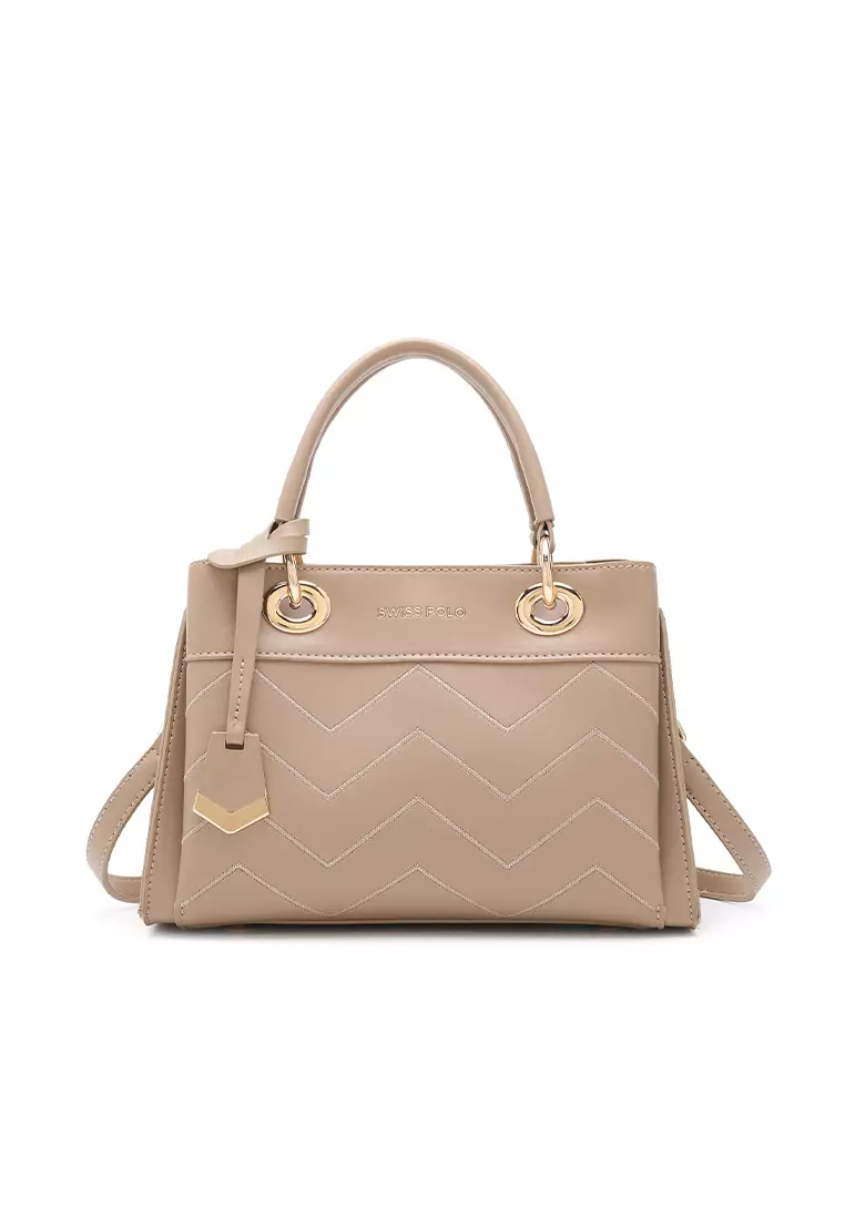 Swiss PoloWomen's Zig Zag Quilted Top Handle Bag / Crossbody Bag / Shoulder Bag - Beige3090.001910.00