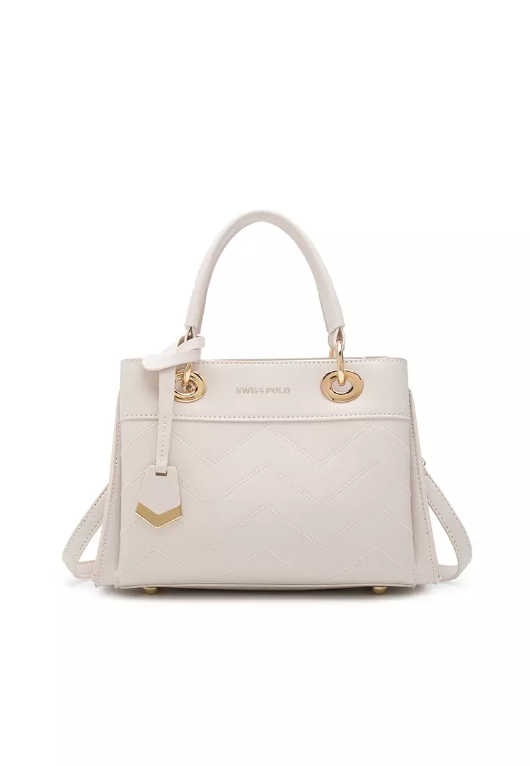 Swiss PoloWomen's Zig Zag Quilted Top Handle Bag / Crossbody Bag / Shoulder Bag - White3090.001910.00