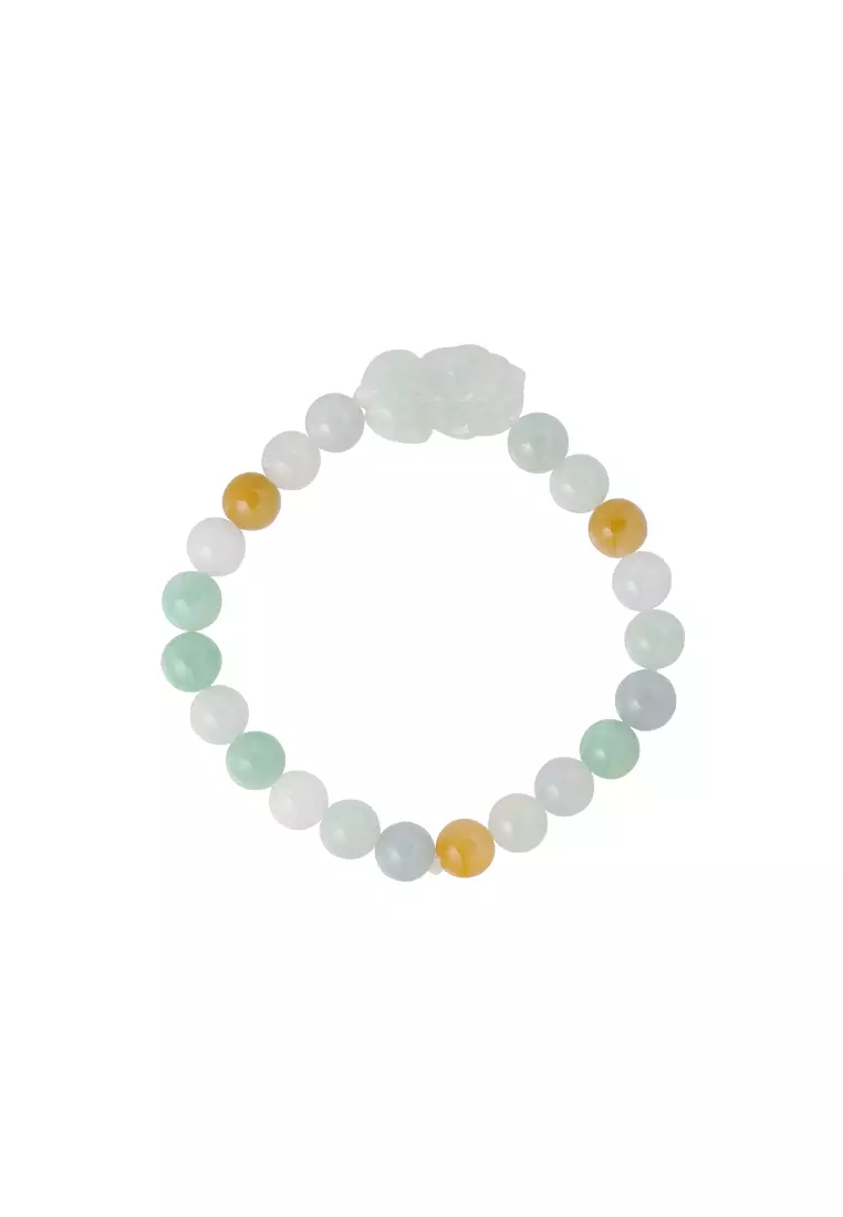 TOMEI 翡翠三彩貔貅 Palace Grace Natural Jade Bead With Pixiu Bracelet | Multi-Tone
