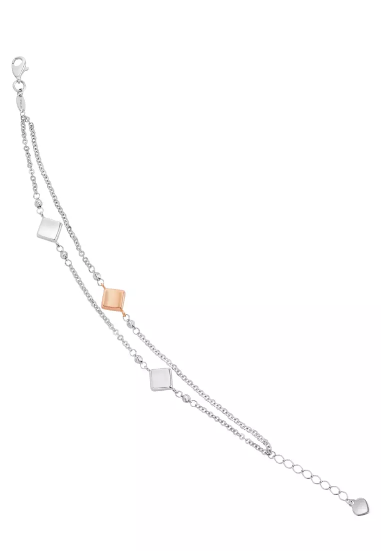 TOMEI Double Strands Bracelet in Quadrated Sensation, White+Rose Gold 585 (VXXFOR2B205110-WR-DC)
