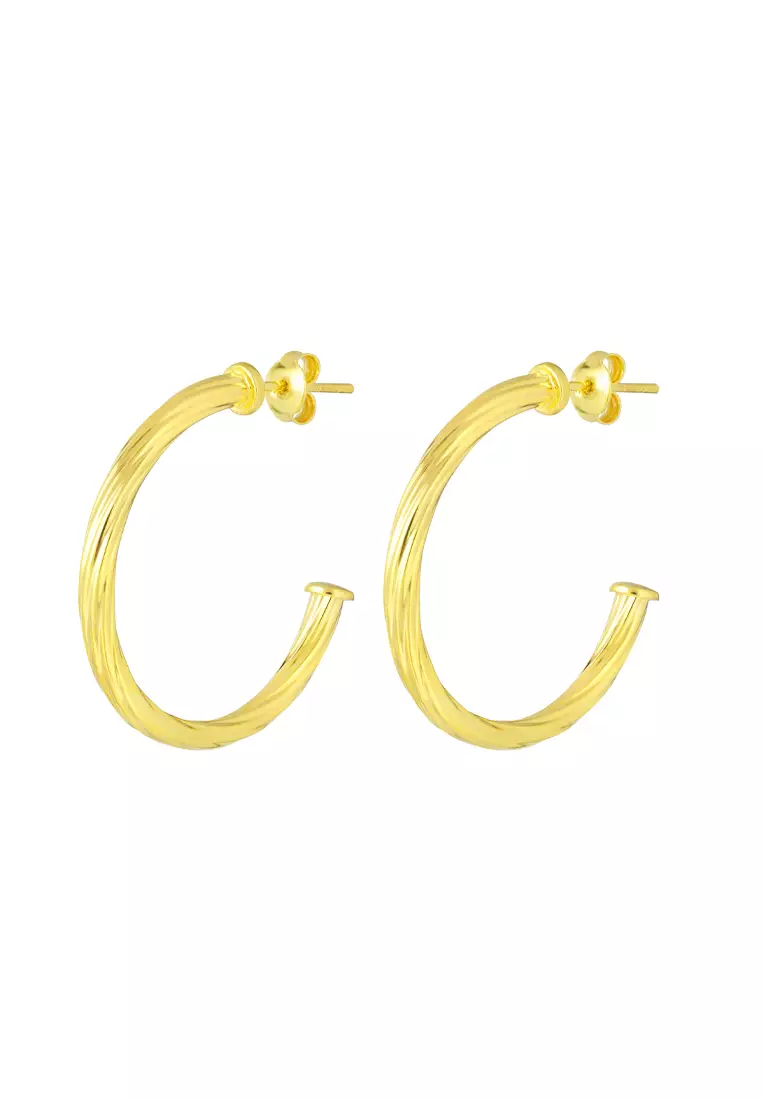 TOMEI Line Patterned C-Shape Earrings, Yellow Gold 916