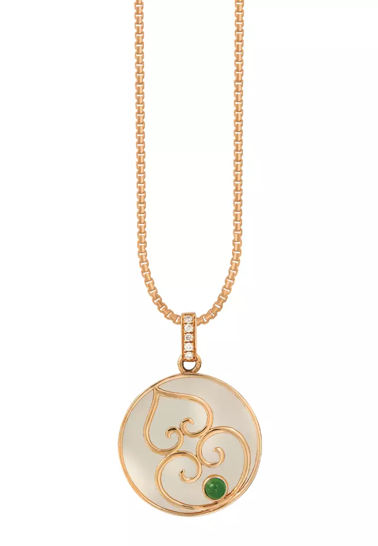 TOMEI Nephrite Collection Hulu Pendant, Rose Gold 750