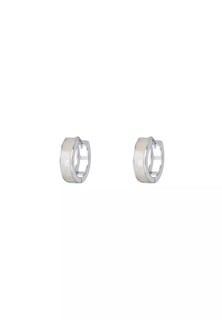 TOMEI Silver Whispers Collection, MOP Hoop Earrings