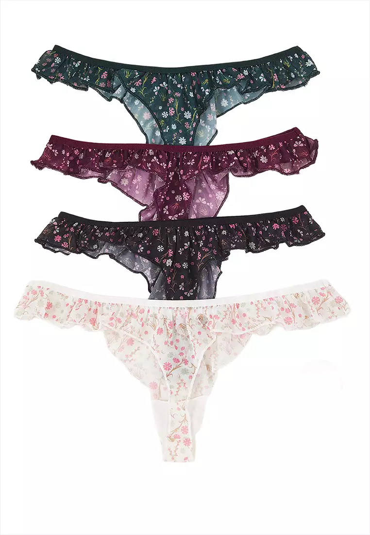 4 Packs Tulle Floral Thongs