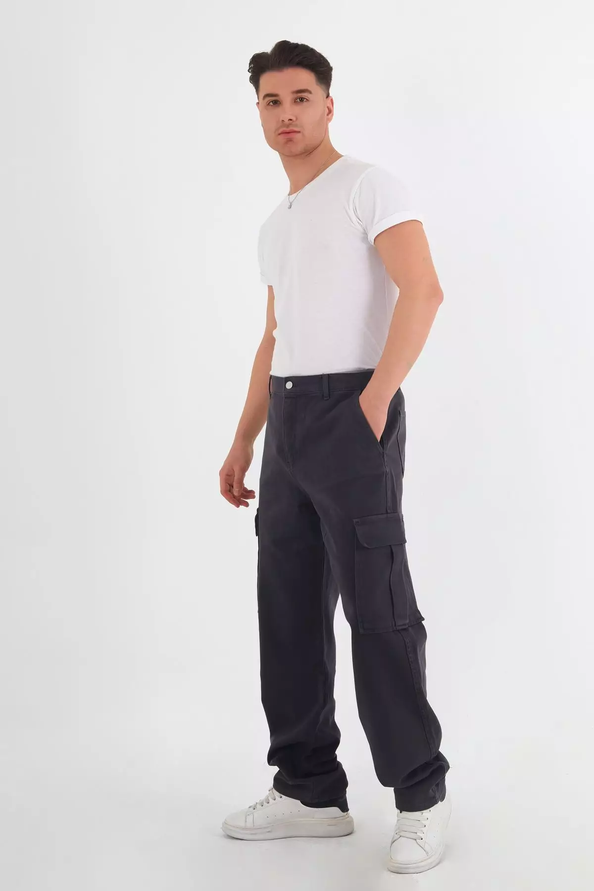 Anthracite Cargo Pocket Gabardine Baggy/Loose Cut 100% Cotton Casual Trousers TMNSS24PL00021