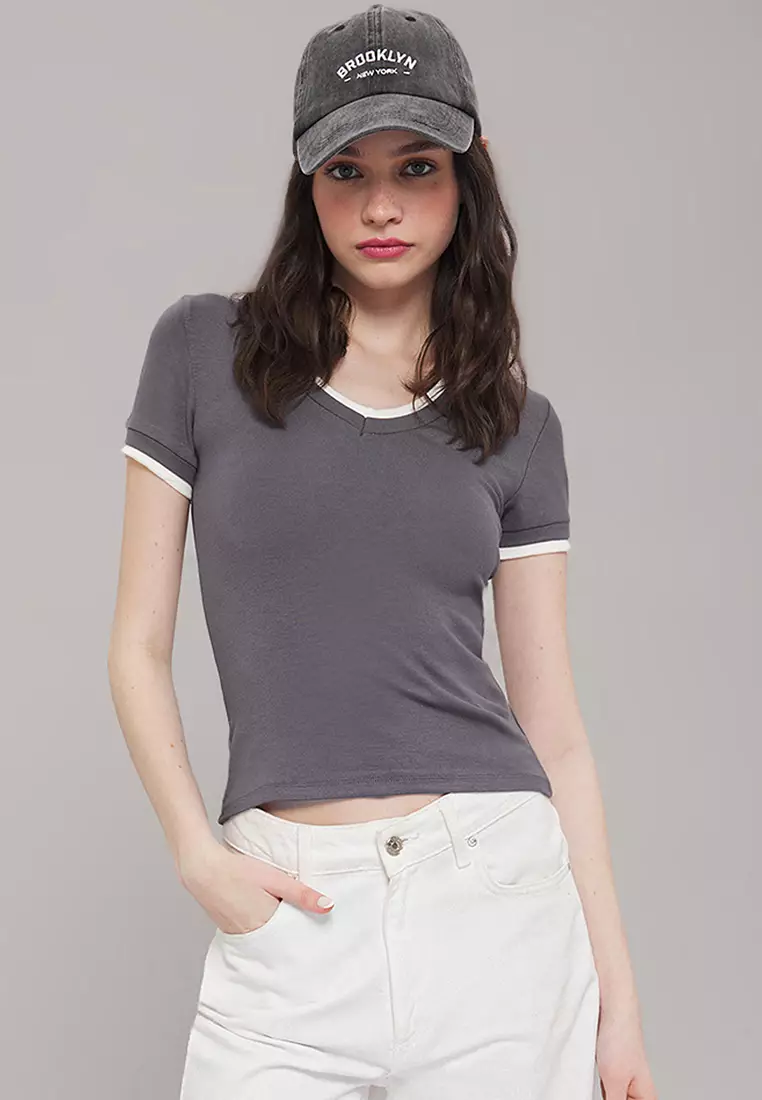 TrendyolAnthracite Color Block Fitted Stretch Knit Blouse1119.00
