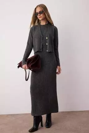TrendyolAnthracite Corded Soft Textured Knitwear Dress Cardigan Suit Tctaw25Us000492699.002365.00