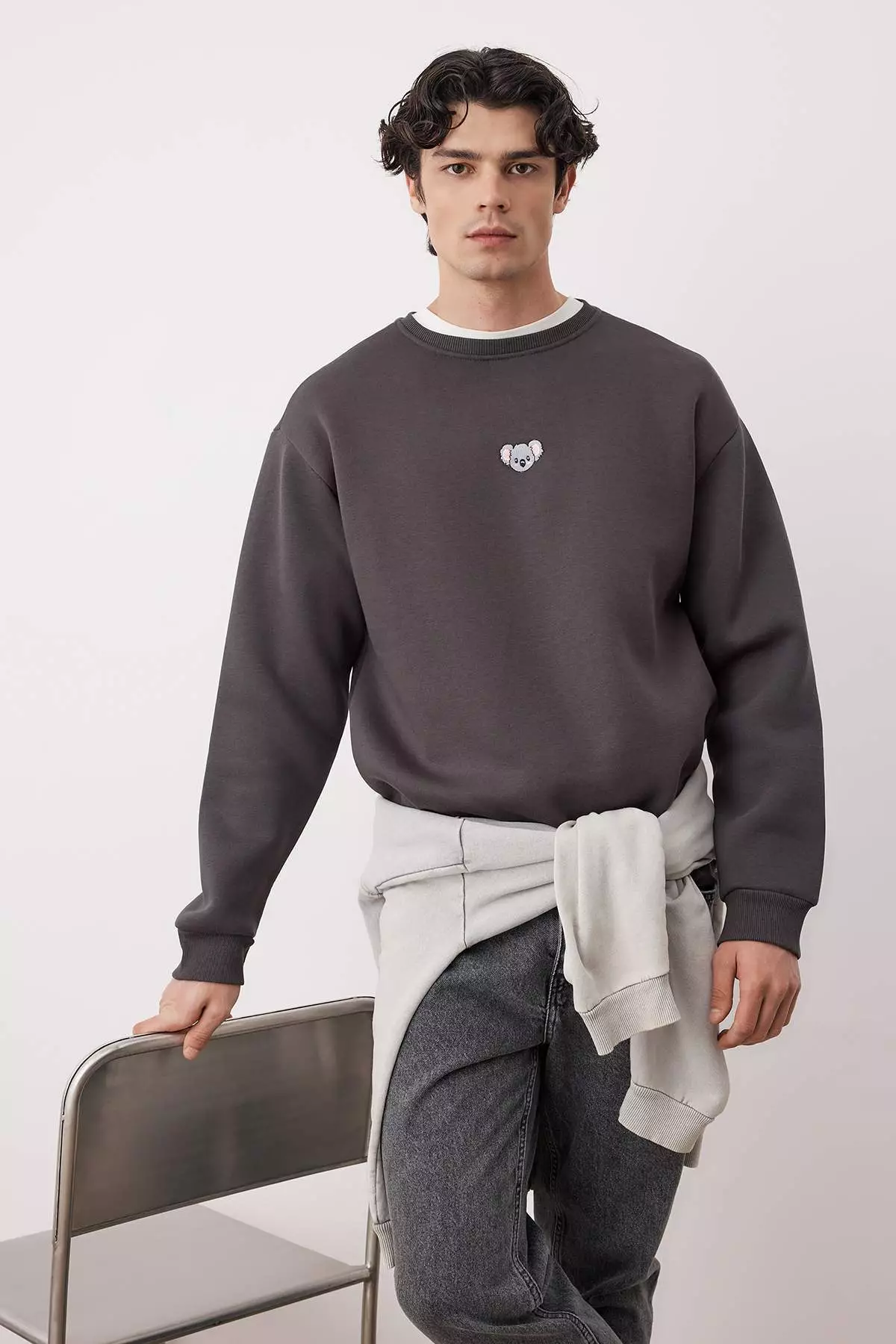 TrendyolAnthracite Crew Neck Oversize/Wide Cut Polar Fleece Inside Penguin Embroidery Sweatshirt1549.001071.00