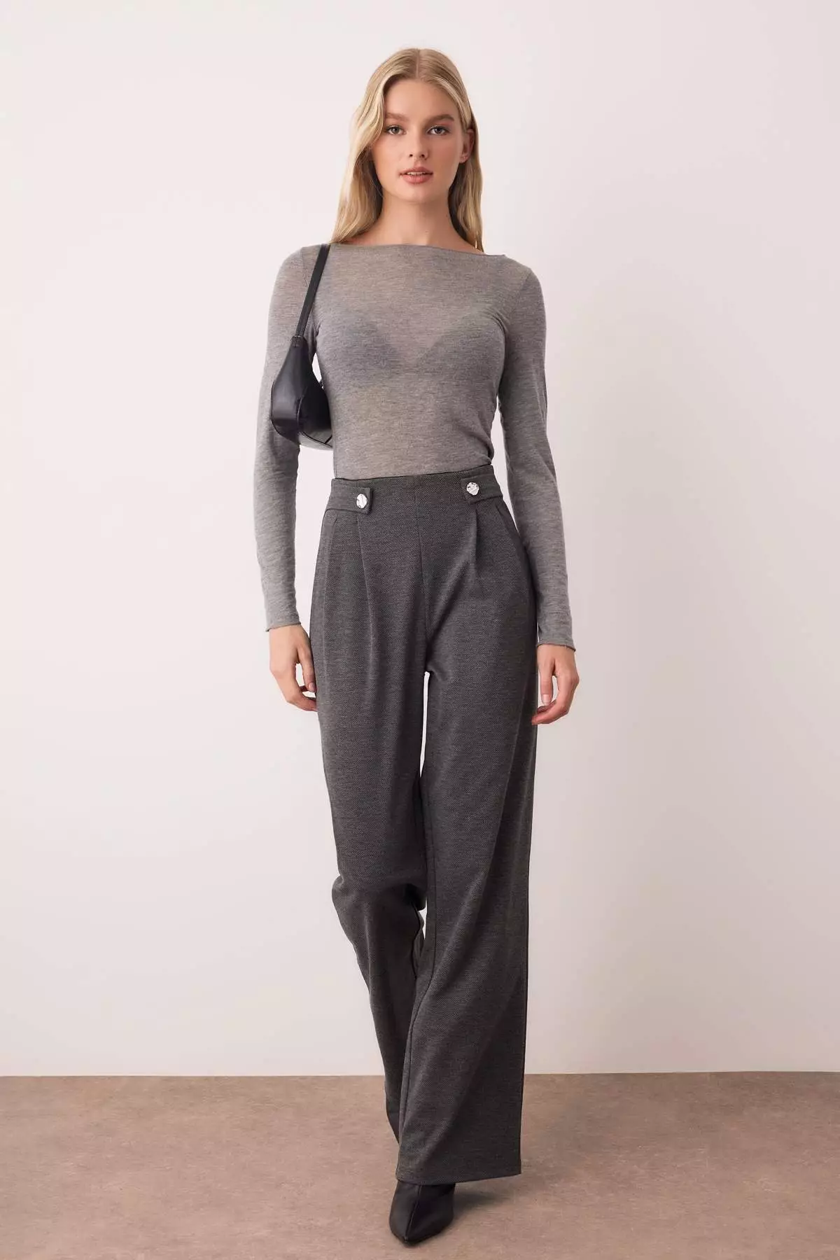 TrendyolAnthracite Diagonal Pleated Buttoned Wide Leg Knitted Trousers2409.00
