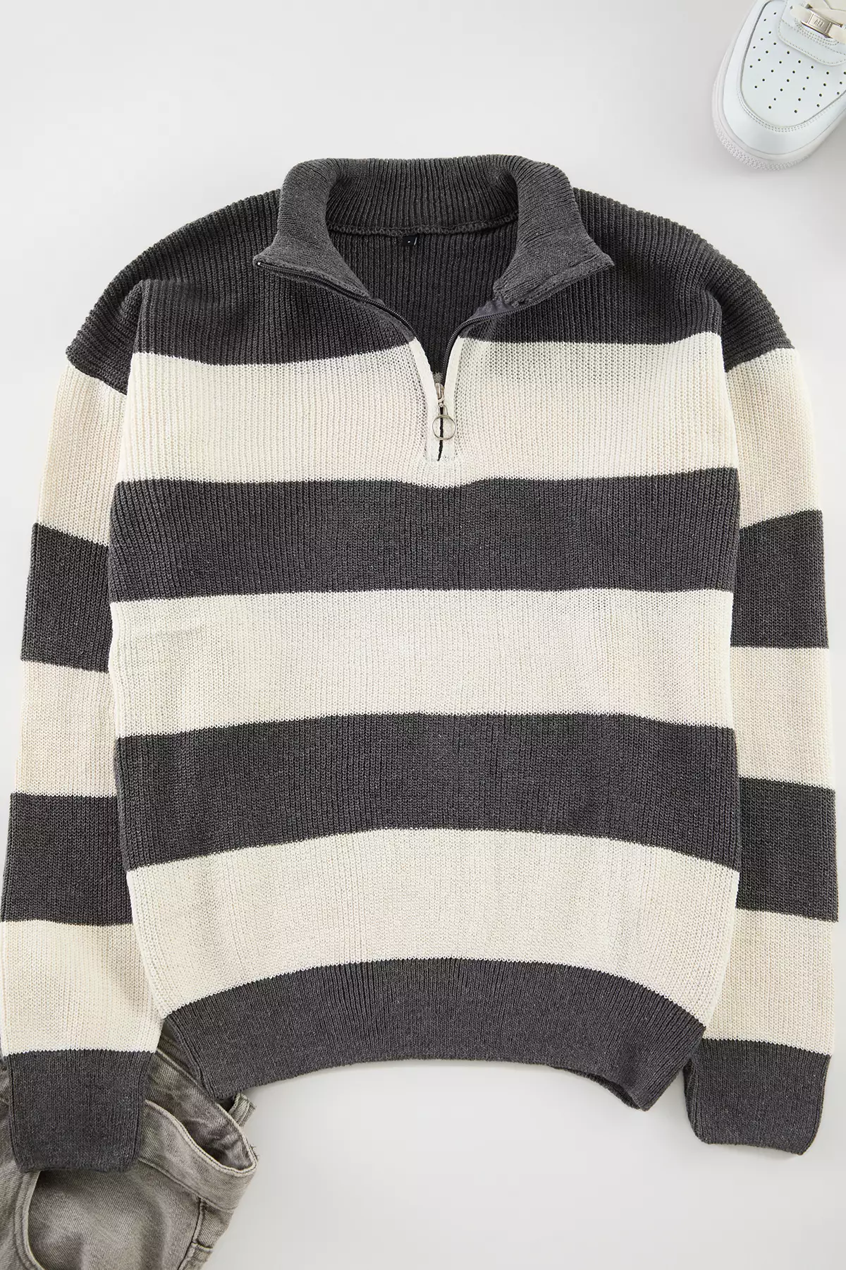 TrendyolAnthracite Fitted Stand Collar Striped Sweater Tmnaw25Kz000621459.00990.00