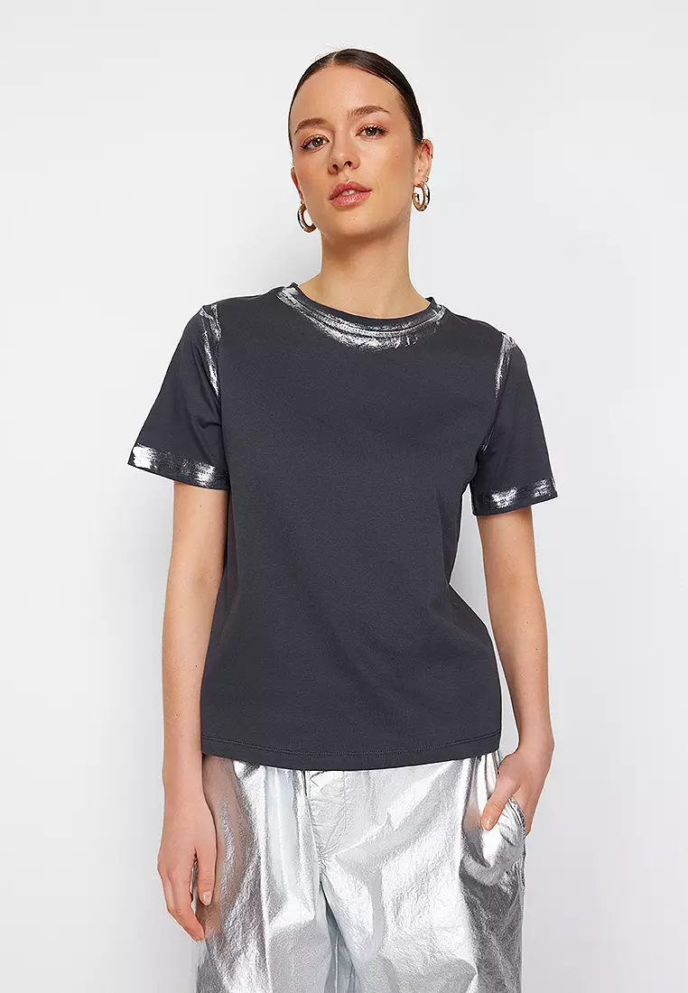 TrendyolAnthracite Gilded Loose/Comfortable Pattern Knitted T-Shirt949.00840.00