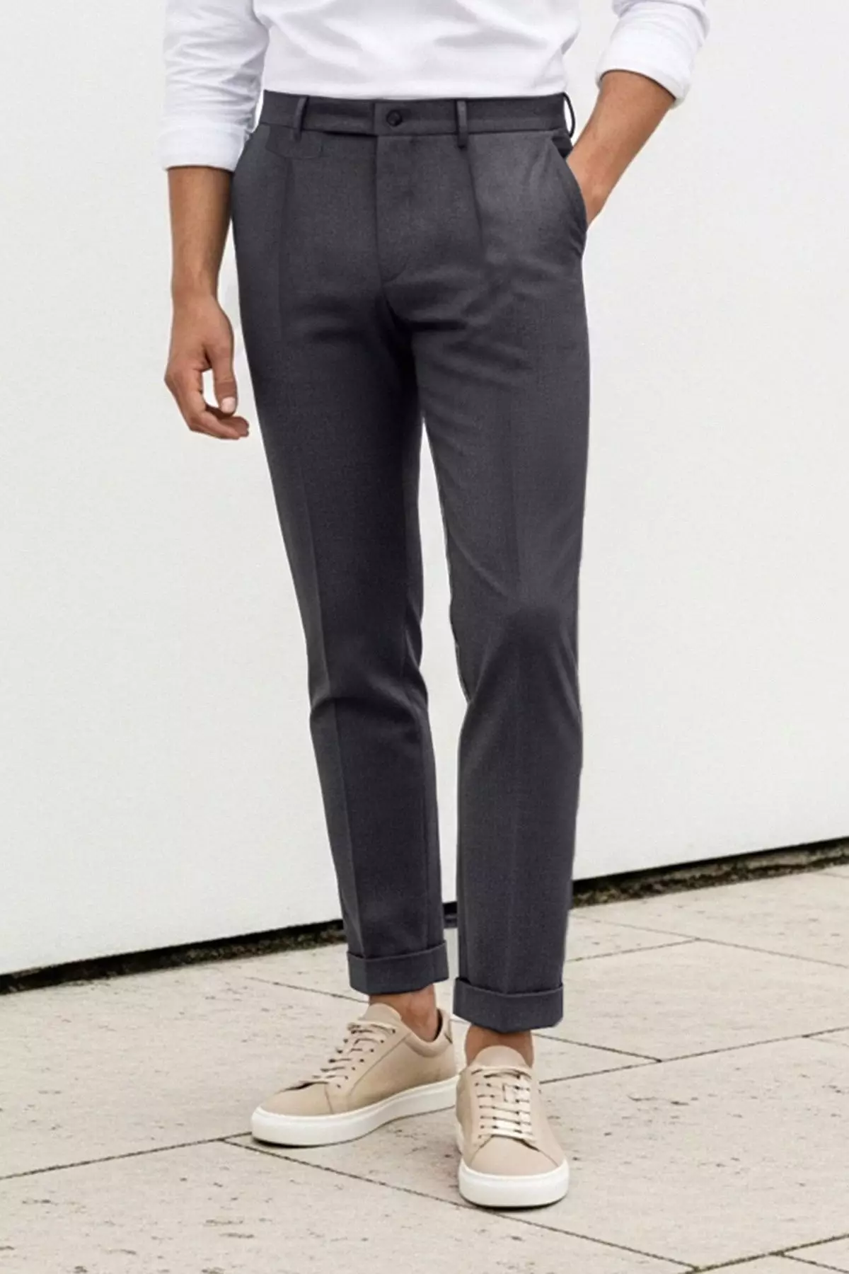 Anthracite Italian Cut Pleated Classic Double Leg Fabric Trousers Tmnss24Pl00022