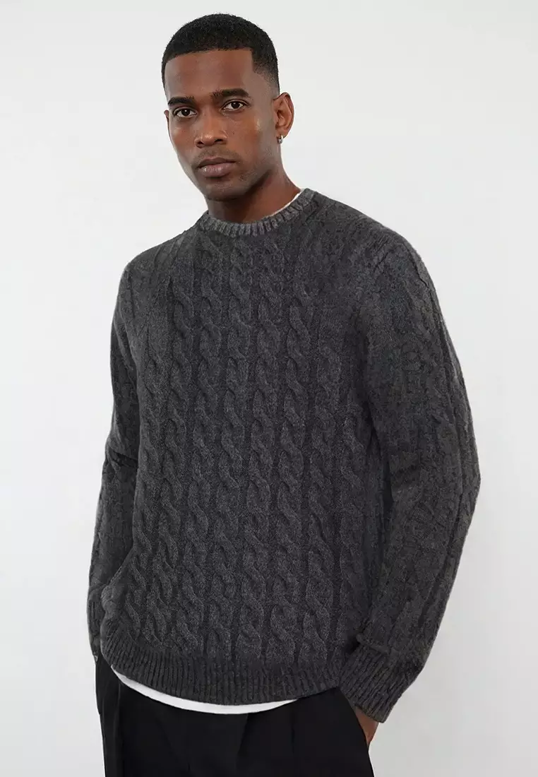 TrendyolAnthracite Slim Fit Crew Neck Hair Knitted Sweater TMNAW25KZ000122069.001285.00