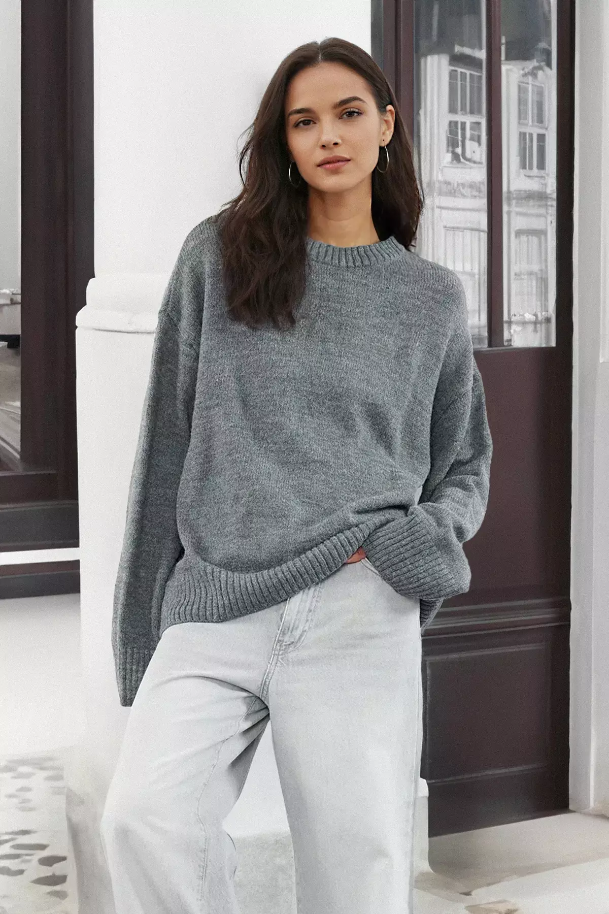 Anthracite Wide Pattern Crew Neck Knitwear Sweater TWOAW25KZ00168