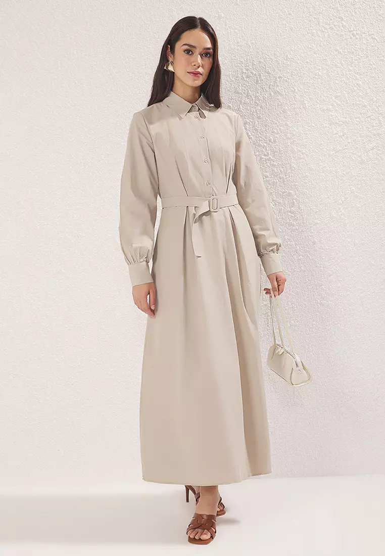 TrendyolBeige Shirt Collar Fabric Belted Woven Dress TCTSS25EB000063249.002866.90