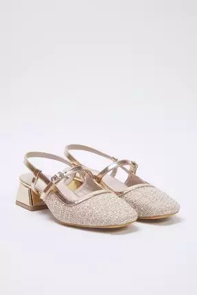 TrendyolBeige Tweed Square Toe Mary Jane Women Block Heels Shoes Takss25To000232169.001374.00