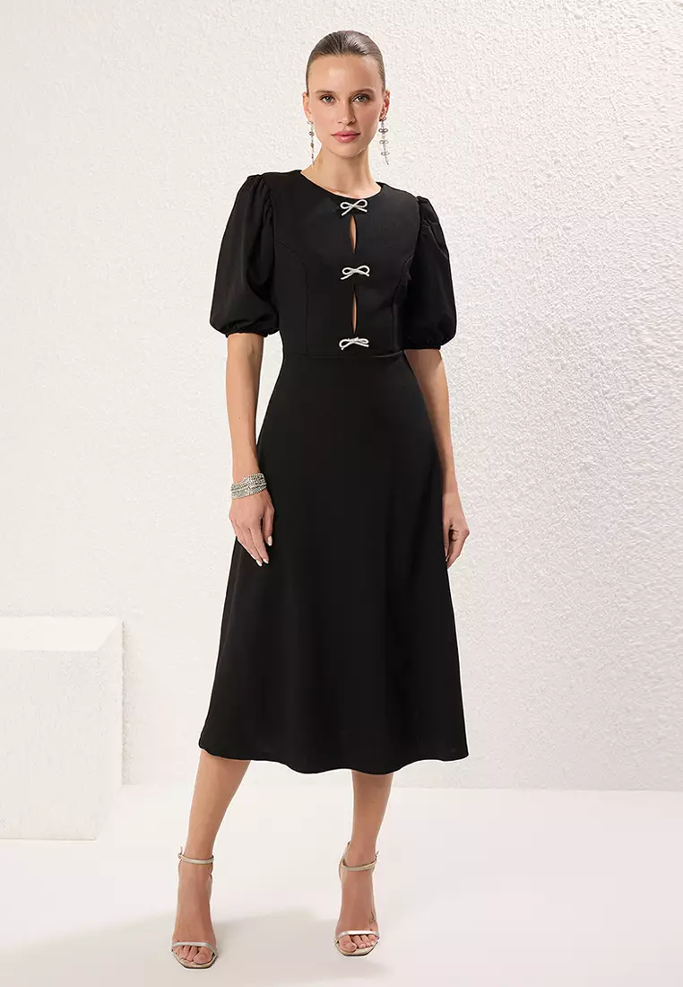 TrendyolBlack A-Line Bow Knitted Elegant Evening Dress Graduation Dress TPRSS25EL002346419.00