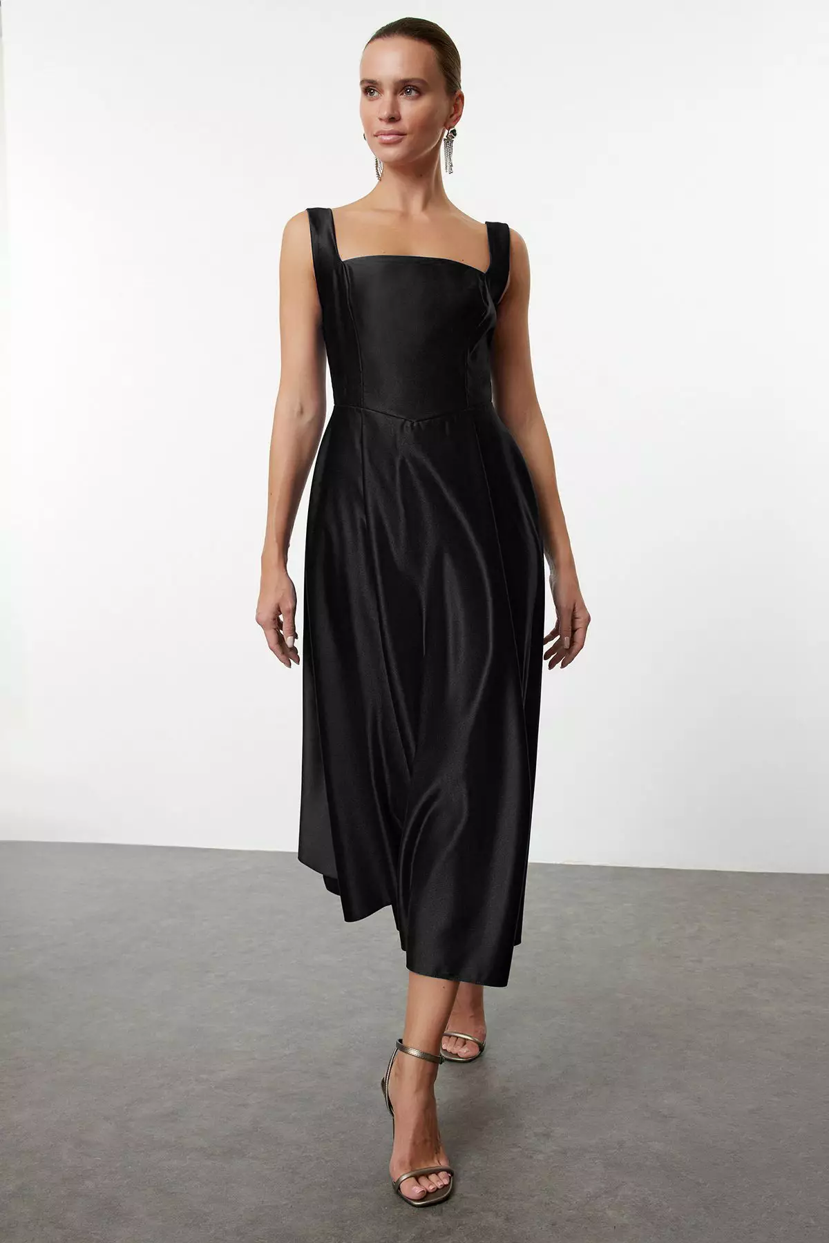 TrendyolBlack A-Line Satin Woven Elegant Evening Prom Dress TPRAW25EL000402729.002102.00