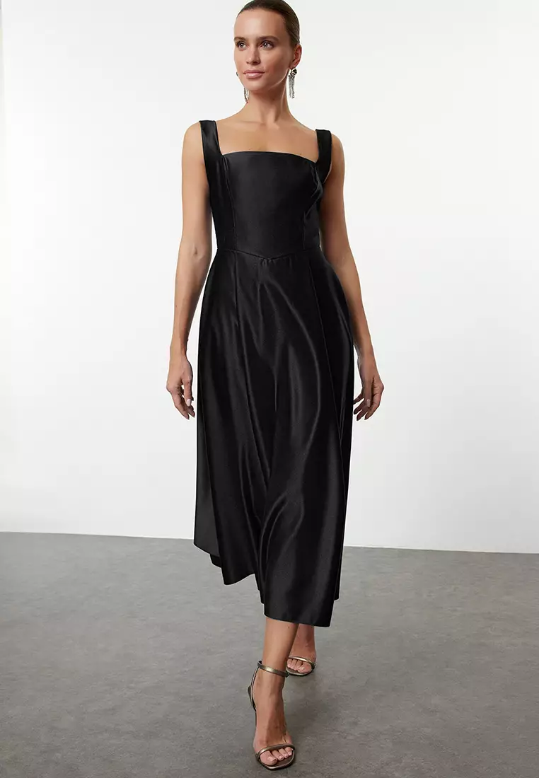 TrendyolBlack A-Line Satin Woven Elegant Evening Prom Dress TPRAW25EL000402729.002363.00