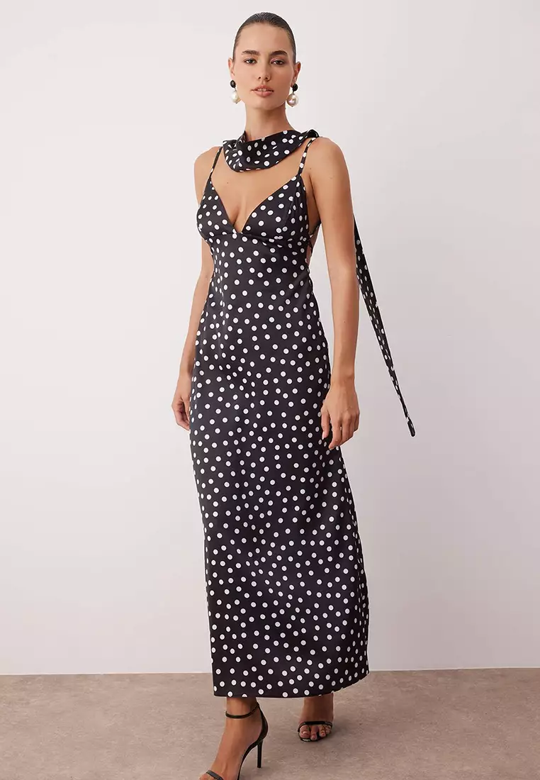 TrendyolBlack And White Shawl Detailed Satin Woven Maxi Evening Night Graduation Dress Tprss25El003123449.003125.00
