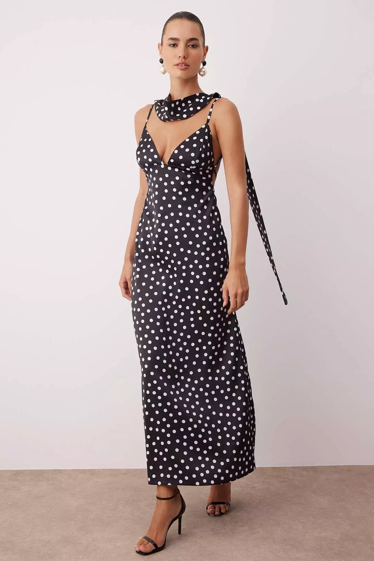 TrendyolBlack And White Shawl Detailed Satin Woven Maxi Evening Night Graduation Dress Tprss25El003123449.002267.00