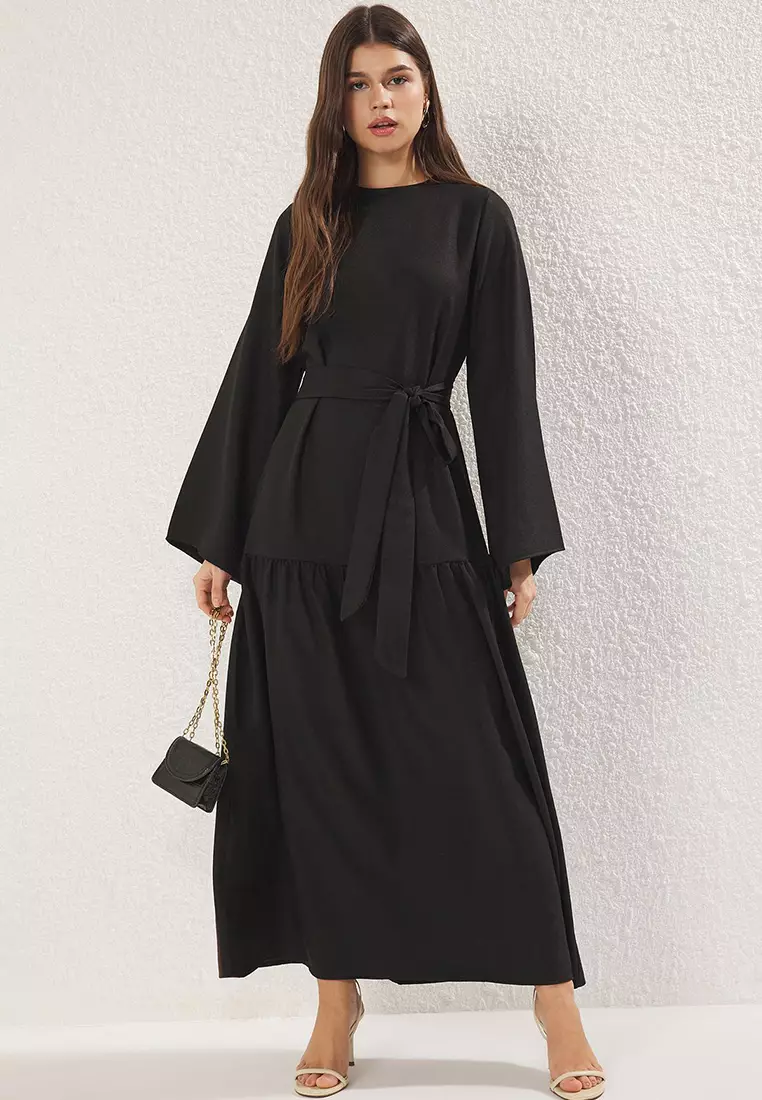 TrendyolBlack Belted Linen Look Woven Dress TCTSS25EB000592169.001352.00