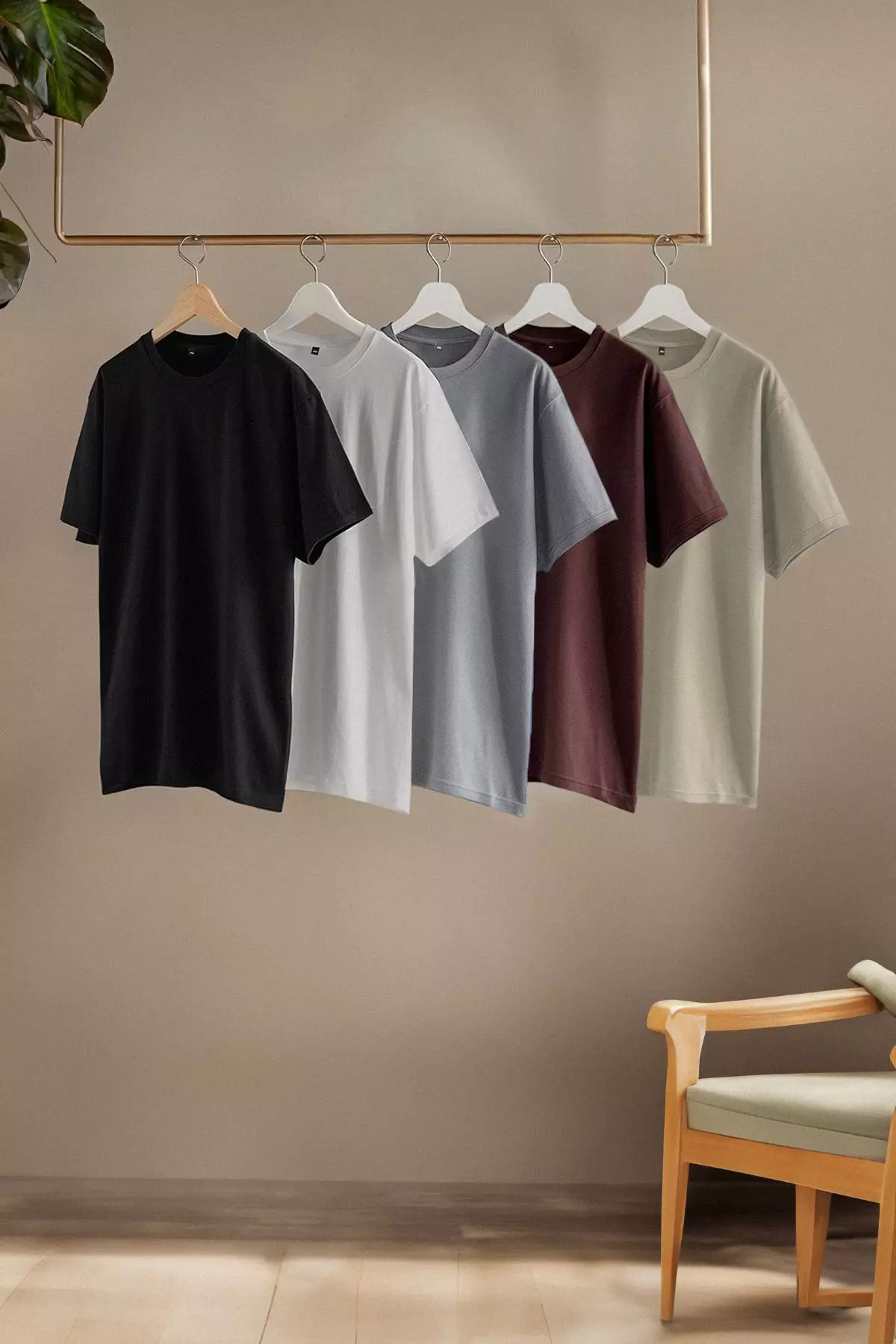 Black-Brown-Grey-Stone-White Slim/Slim Fit 5 Pack 100% Cotton T-shirt TMNAW20TS0243