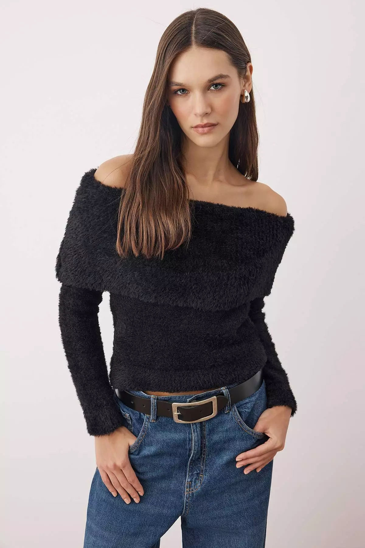 TrendyolBlack Carmen Collar Feathered/Beard Thread Knitwear Sweater2599.001431.90