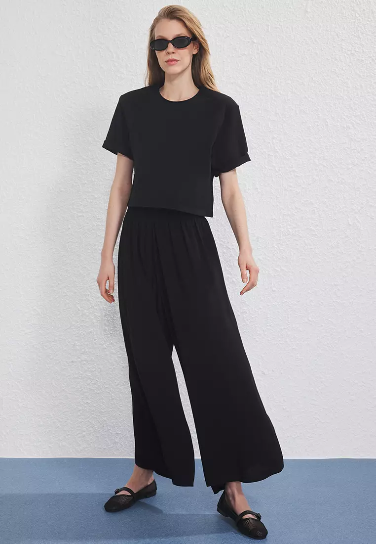 TrendyolBlack Elastic Waist Soft Comfortable Fabric Wide Leg Extra Wide Leg Woven Trousers TWOSS25PL001034459.003739.00