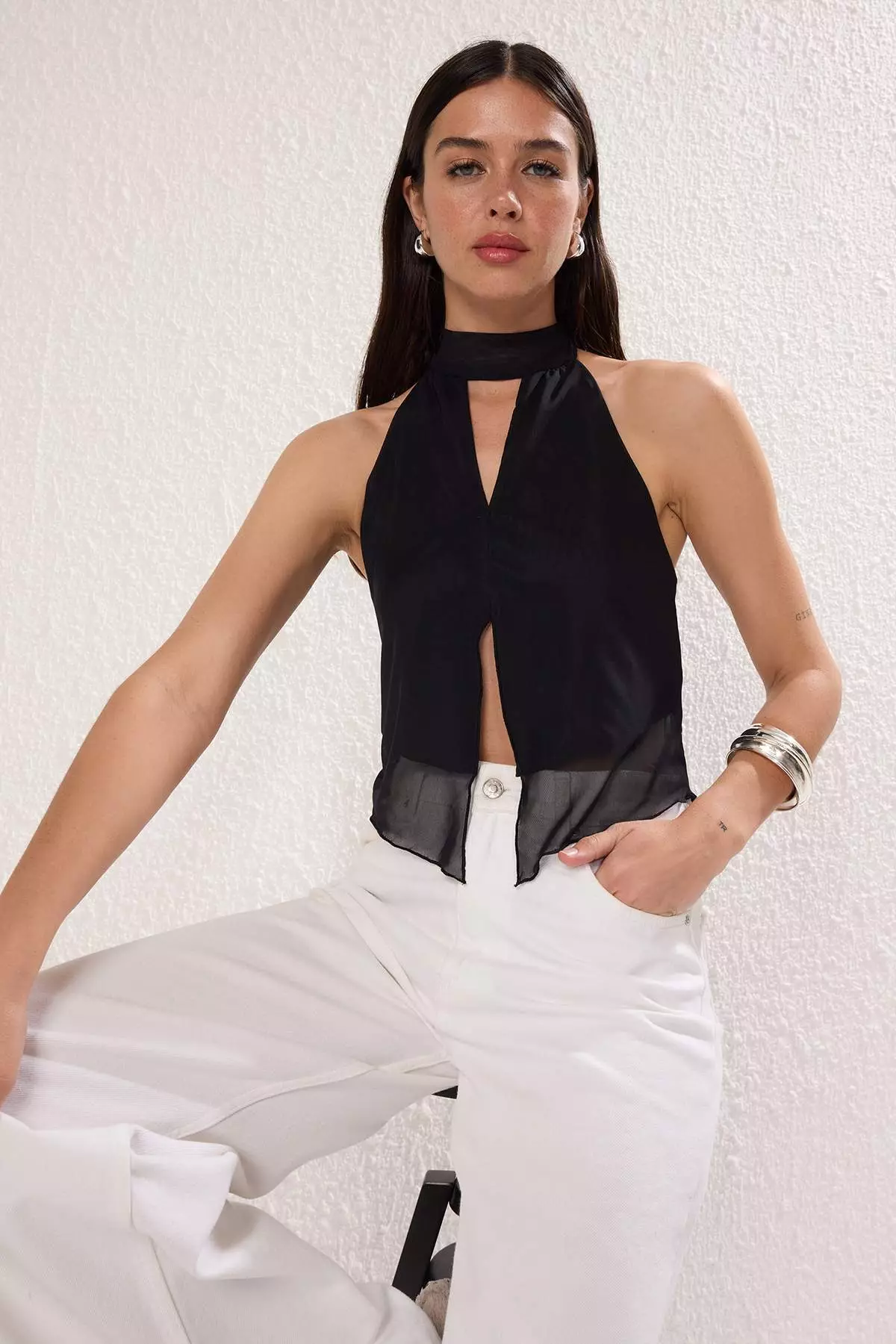TrendyolBlack Halter Neck Knitted Tulle Party Blouse Tprss25Bz000531199.00867.00