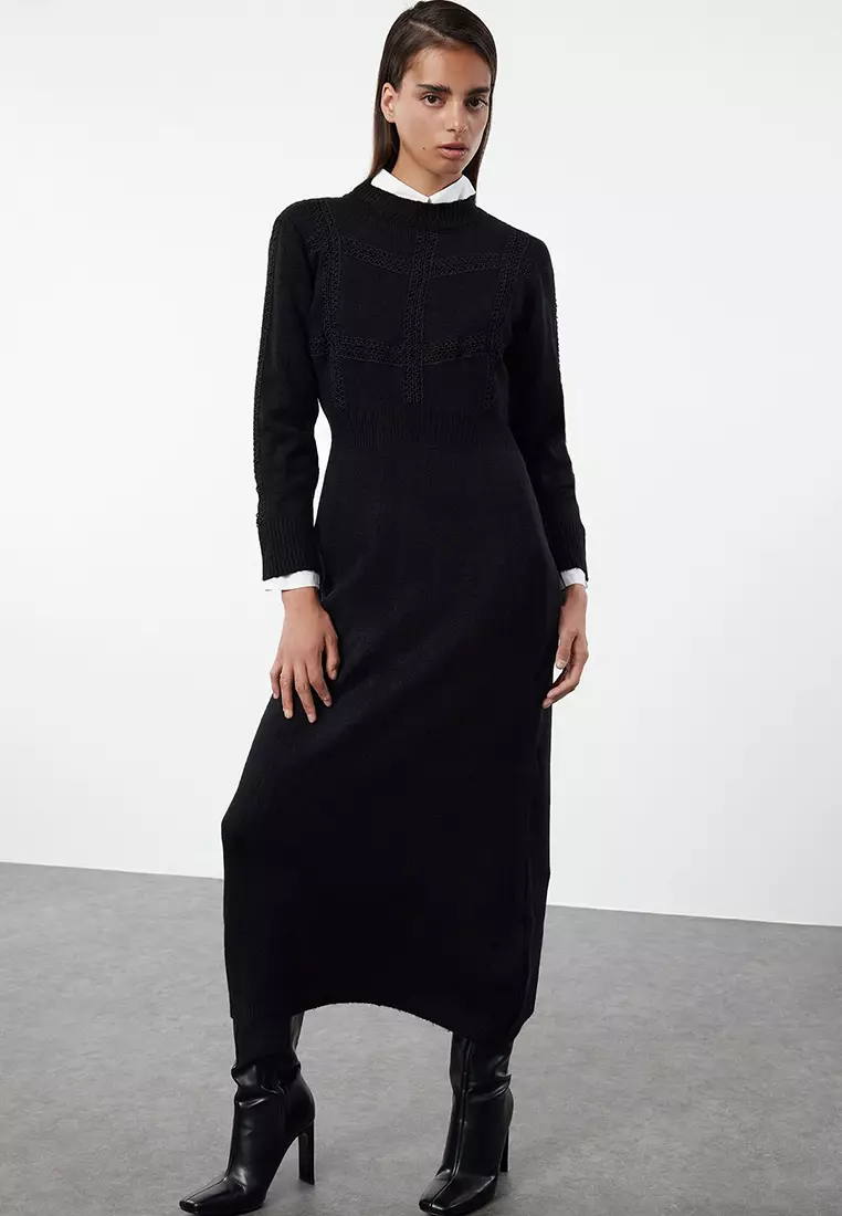TrendyolBlack Lace Detailed Soft Textured Knitwear Dress Tctaw25Eb000153089.002725.90