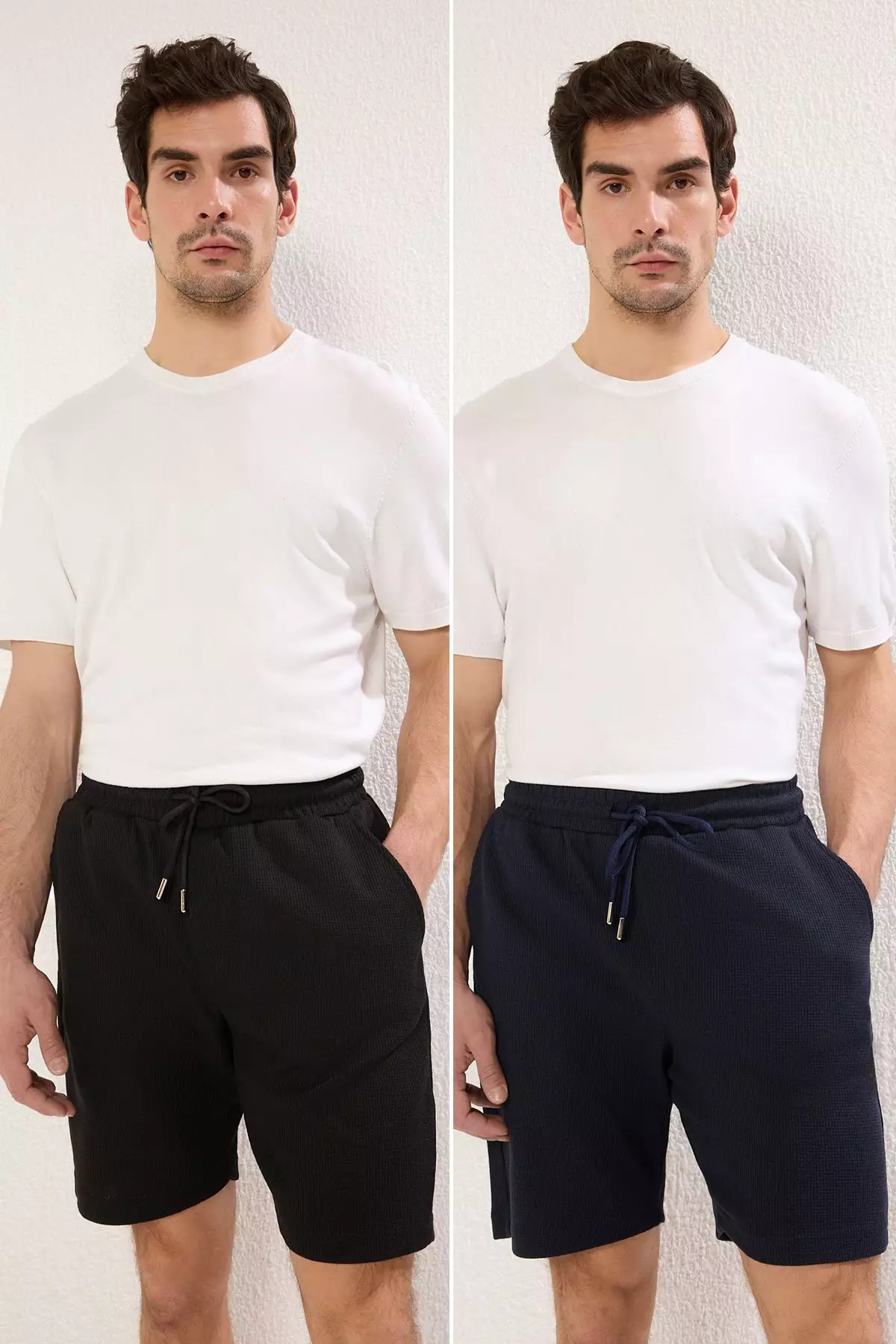 Black-Navy 2-Pack Regular/Normal Cut Textured Packaged Shorts & Bermuda TMNSS23SR00076