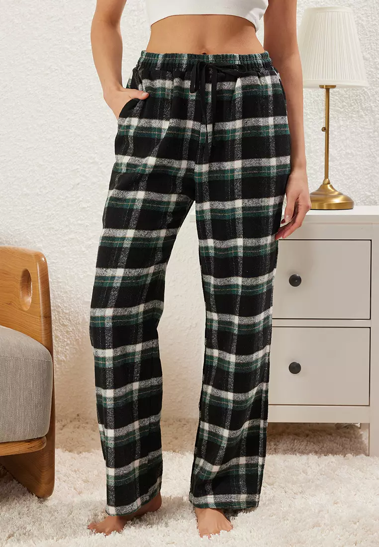 Black Plaid Woven Pajama Bottoms THMAW25PJ00021