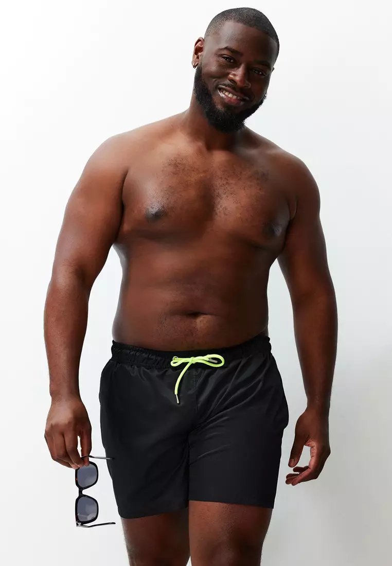 Black Plus Size Standard Fit Swimsuit Swim Shorts TMNSS24KD00000