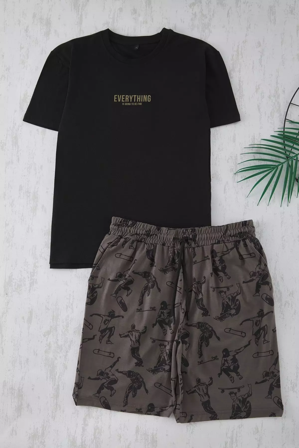 Black Regular Fit Printed Shorts Knitted Pajama Set TMNSS25PT00020