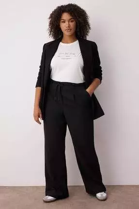 Black Rubber Waist Woven Plus Size Pants Tbbaw26Ar00000