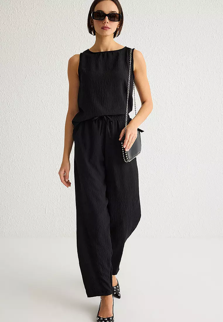 TrendyolBlack Sleeveless Blouse And Elastic Waist Wide Leg Trousers Woven Top Bottom Set2019.001755.00