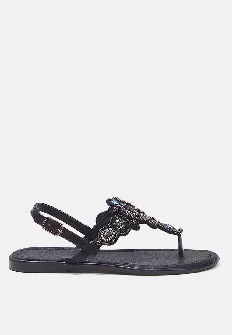 Black Stone Accessory Ankle Strap Flip Flops Women's Stylish Sandals Takss25Sd00005
