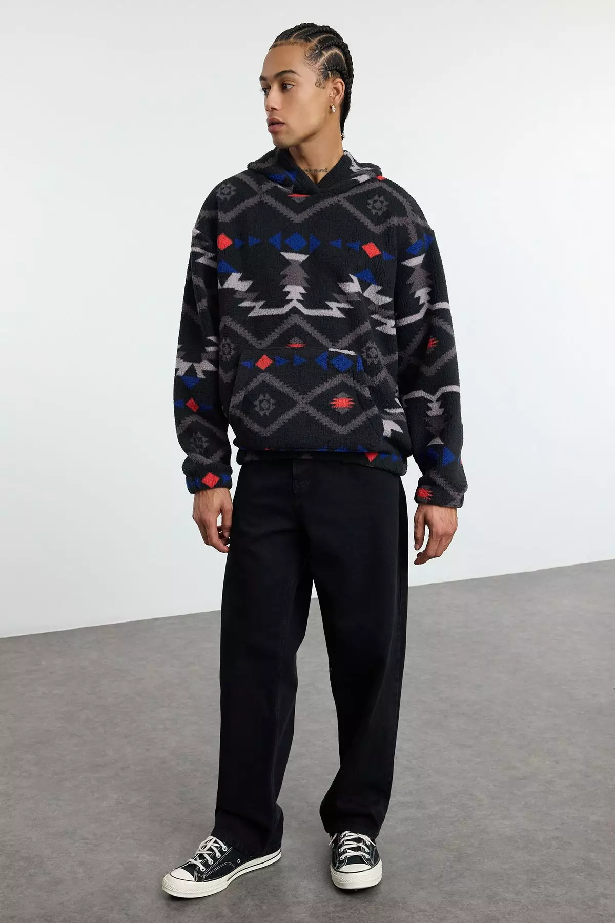 TrendyolBlack Unisex Oversize/Wide Cut Patterned Sherpa Fleece/Plush Hooded Sweatshirt TMNAW25SW001471959.001271.00