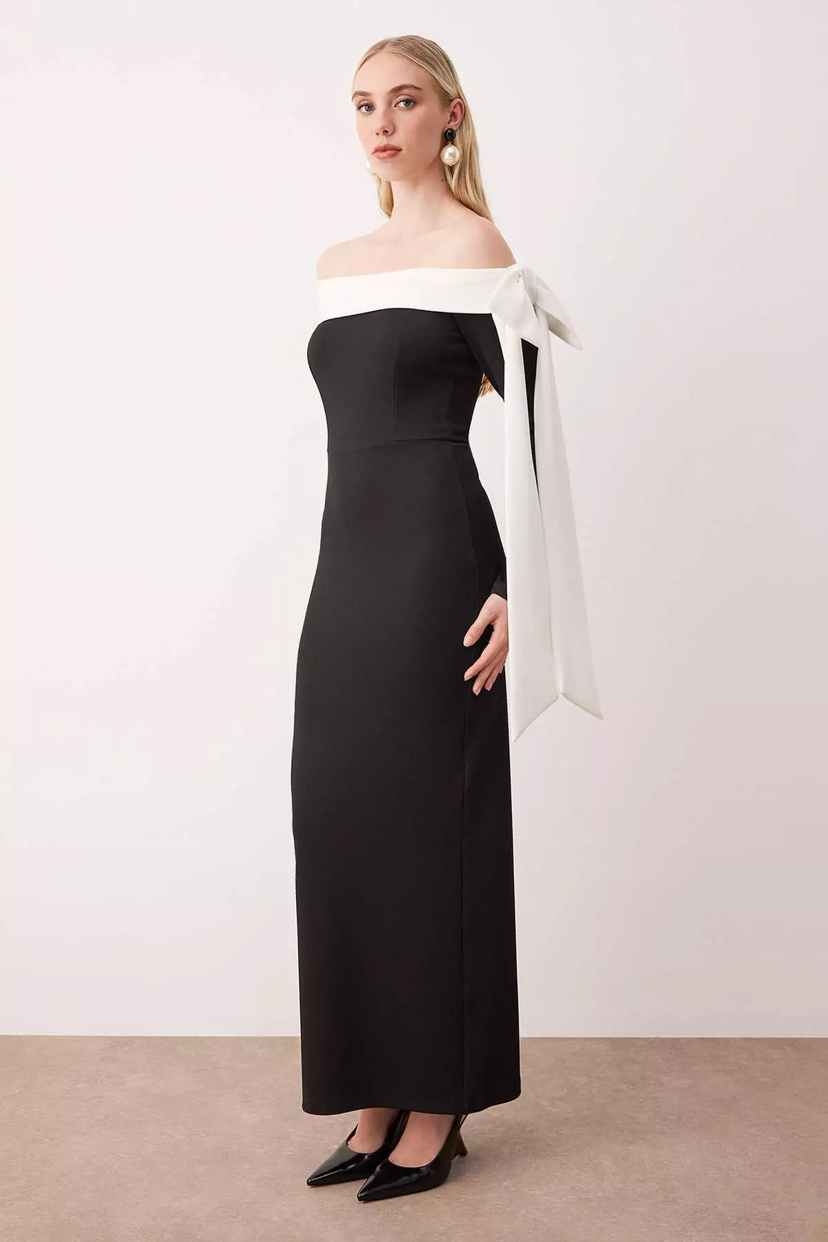 TrendyolBlack-White Bow Detailed Knitted Crepe Maxi Unlined Chic/Evening Dress2299.001296.00