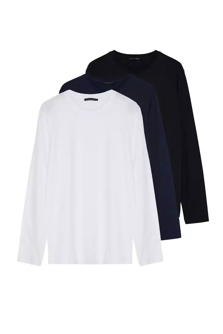 TrendyolBlack-White-Navy Blue Men's Regular/Regular Cut Crew Neck Long Sleeved 3-Pack Basic T-Shirt.2679.00