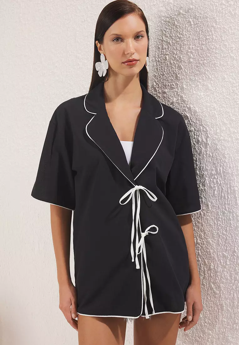 TrendyolBlack Woven Lacing Detailed 100% Cotton Beach Shirt Tbess25Go000252229.001409.90