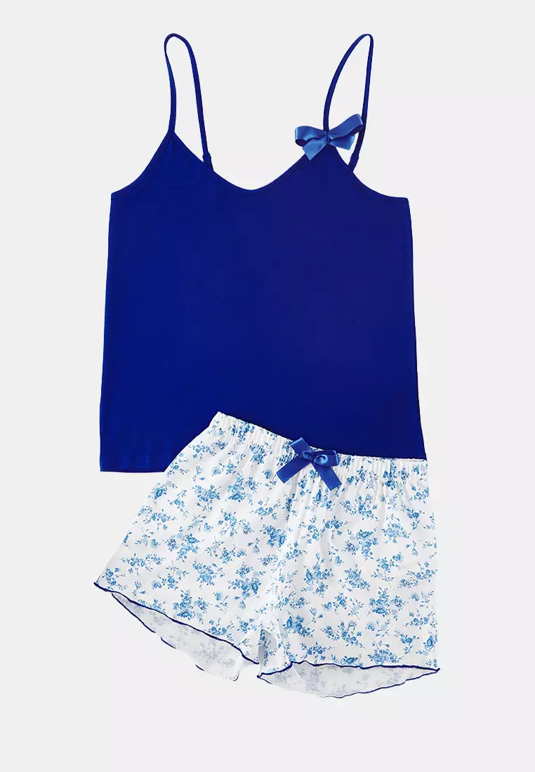 TrendyolBlue Floral Ribbon/Bow Knitted Pajama Set with Rope Suspender Shorts THMSS24PT003201429.001029.00