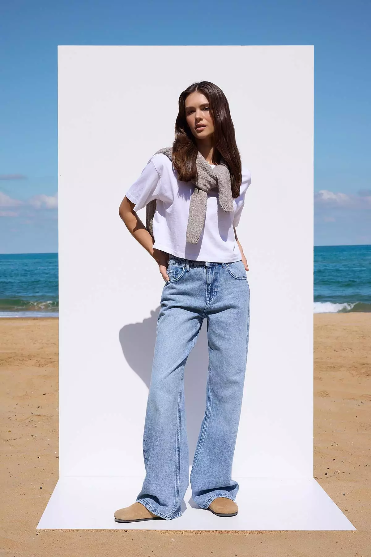Blue More Sustainable Normal Waist Wide Leg Palazzo Jeans