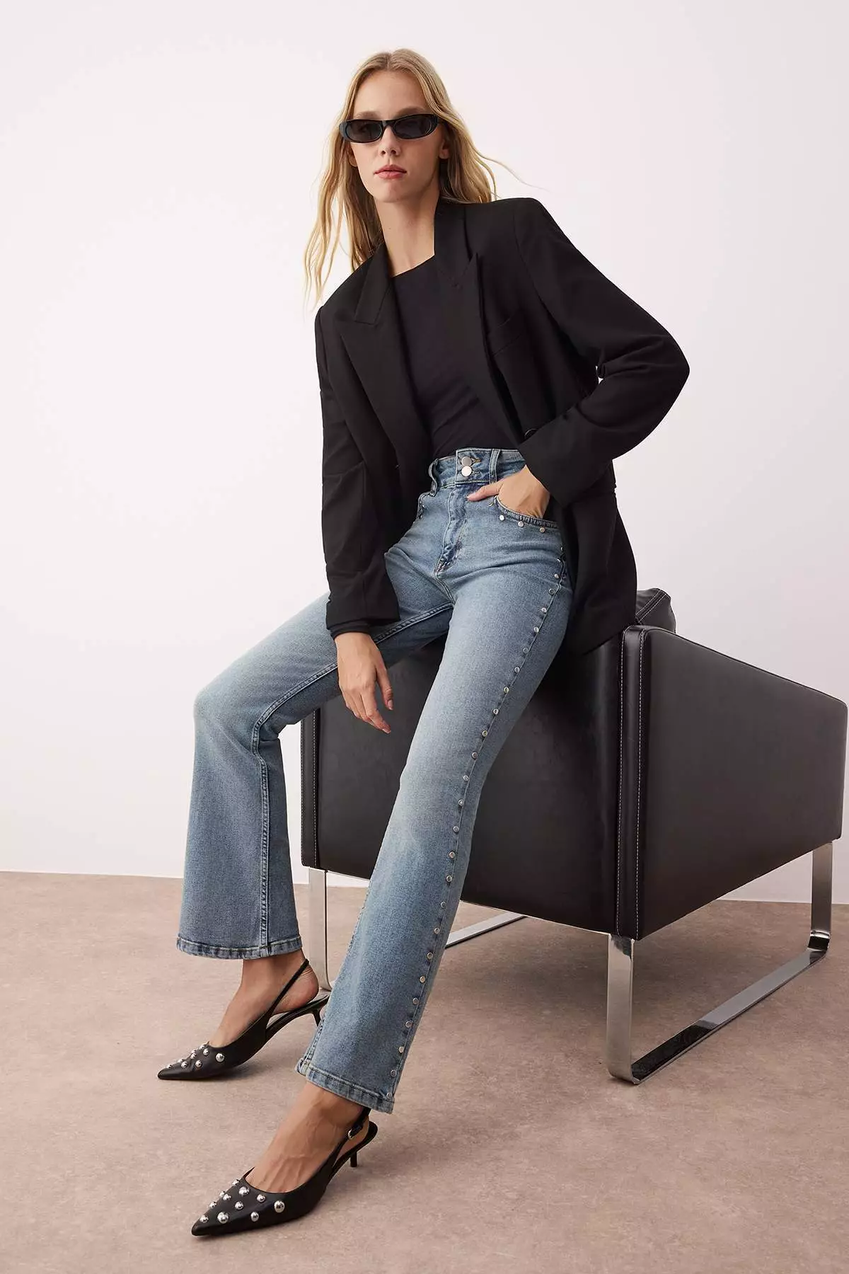 Blue Stone Detailed High Waist Flare Jeans Twoaw26Je00035