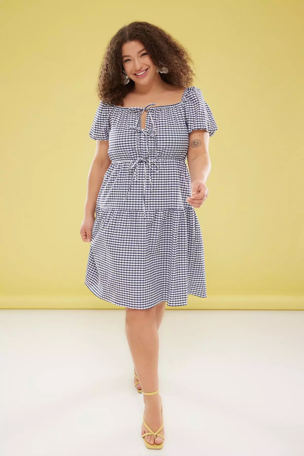 TrendyolBow Plaid/Check Short Balloon Sleeve Mini Plus Size Dress2469.001712.90